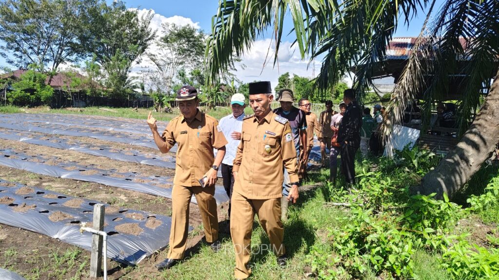 Wakil Bupati Aceh Singkil, Hamzah Sulaiman, melakukan penanaman perdana sebanyak seribu batang bibit cabai merah. Kegiatan tersebut berlangsung di Pulo Sarok, Selasa (13/1/2026).(Foto: Prokopim Aceh Singkil)